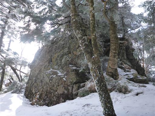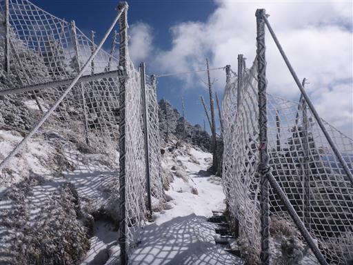 山頂部は凍り付いている。風が強く寒い。