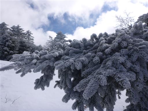 青空が出てきて、ますます霧氷が美しくなる。