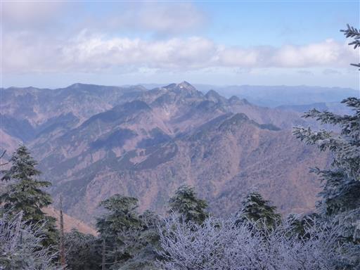 真正面に三角形の八経ヶ岳がよく見える。
