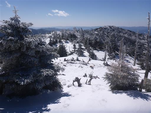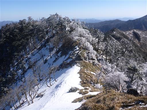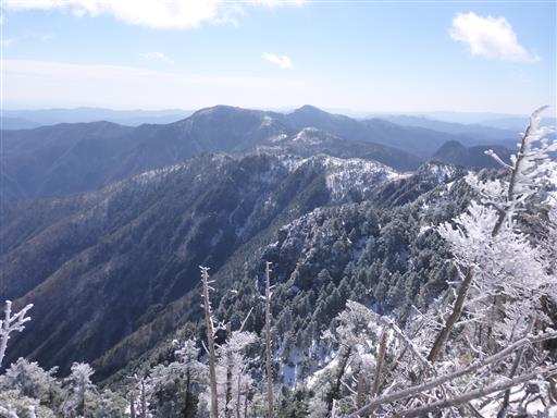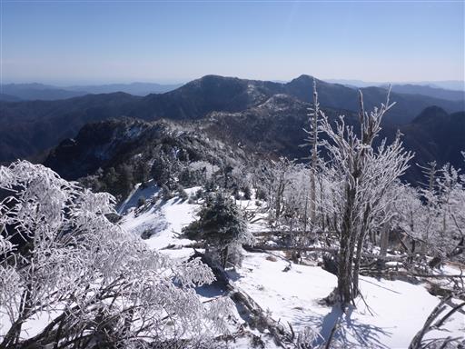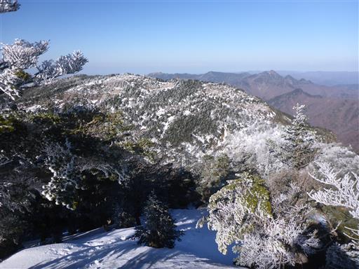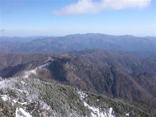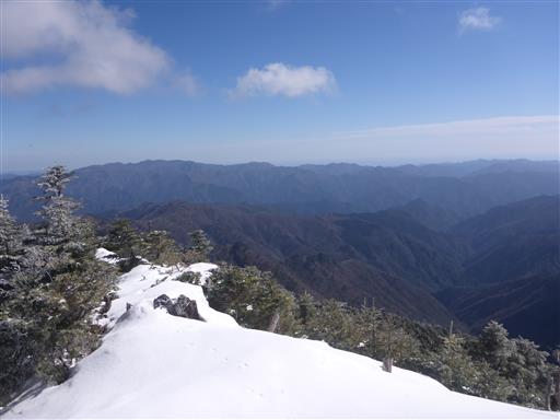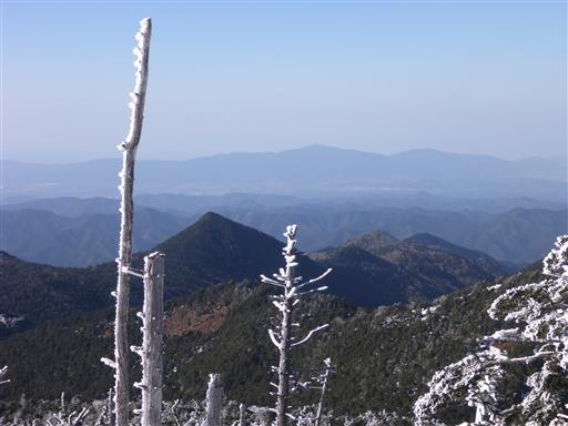 遠くに見えるのは大台ヶ原。あっちは全く雪が無いように見える。
