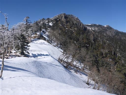 ここから釈迦ヶ岳に向けて稜線を歩き始める。
