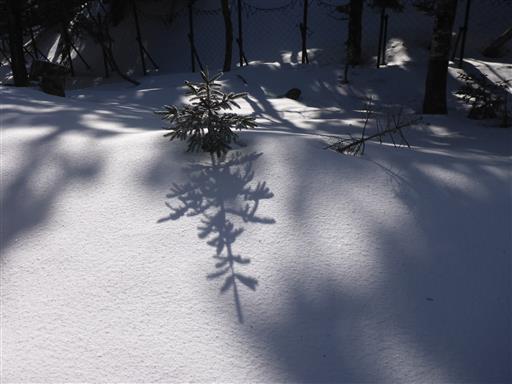 シラビソの幼木。日が傾いて影がだいぶ長くなっている。