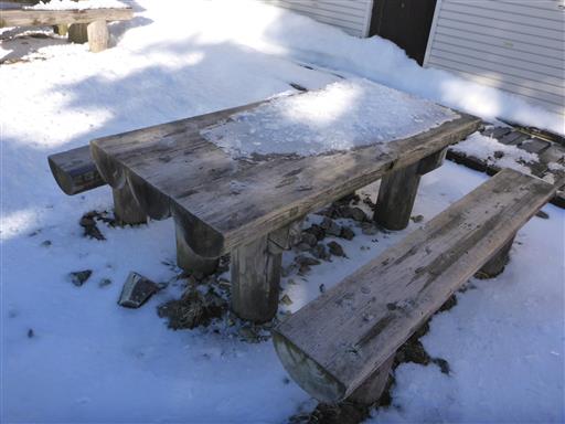 ちょうど雪のないベンチとテーブルを見つけたため、ここで夕食の準備。