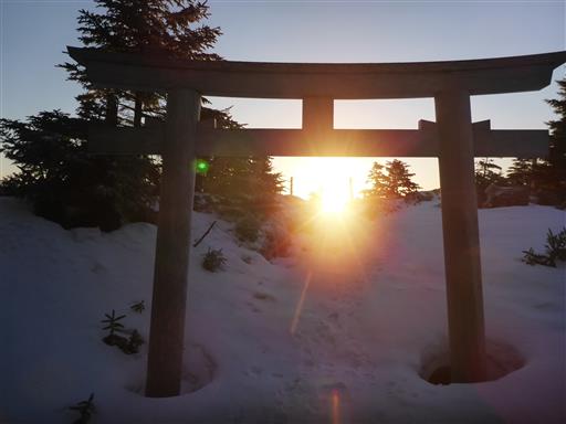 ちょうど鳥居の奥に陽が落ちていく。