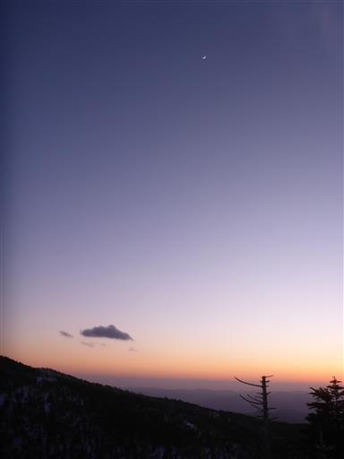 夕方に近づくにつれてますます空は青くなり、霧氷が白く輝いてこの上なく美しい。