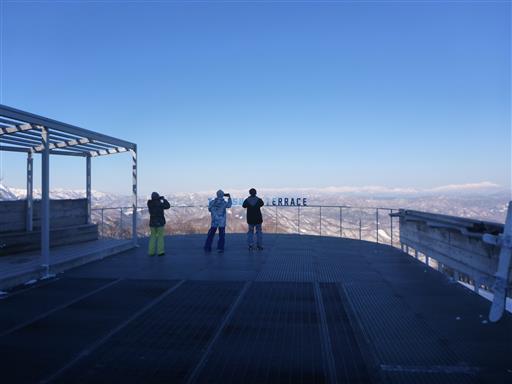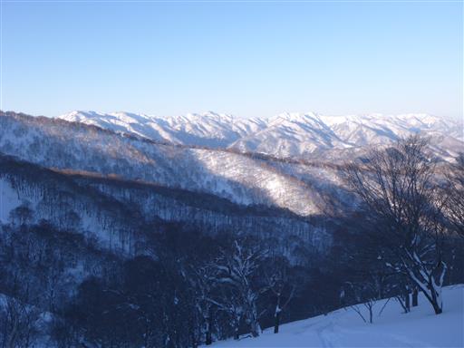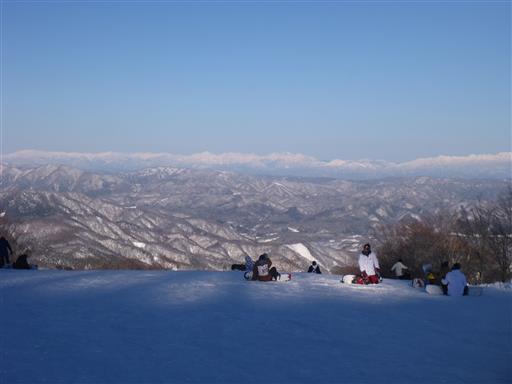 西側から眺める北アルプスの山々。晴れれば絶景のスキー場だ。