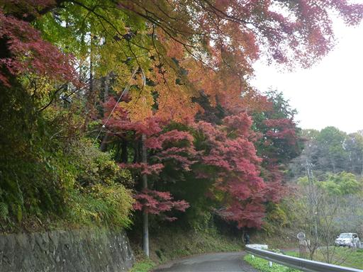 歩いて少し車道を下る。この辺りは紅葉が美しい。
