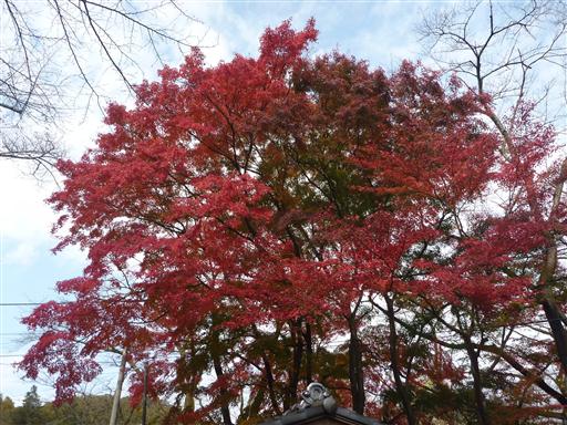 駐車場の脇には見事なモミジの紅葉が見られる。