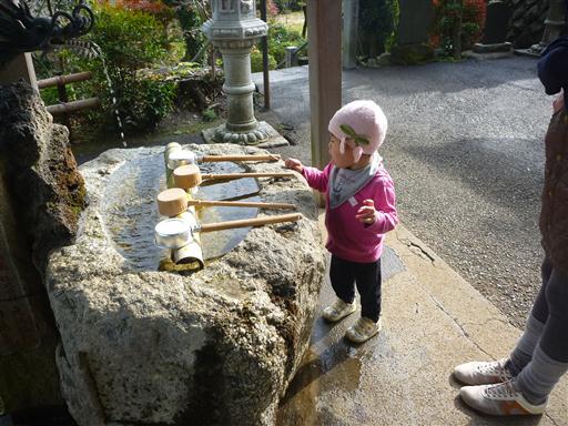手洗い場で手を清める。