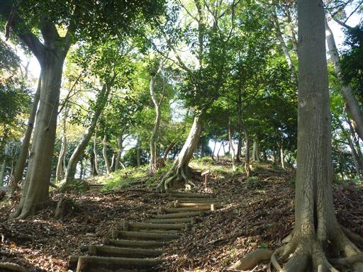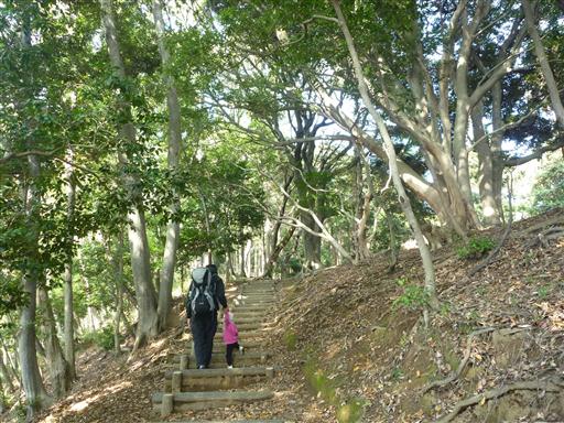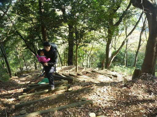 手をつないで木段を登っていく。一段一段が大きくて少々登りにくそうだ。