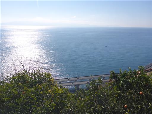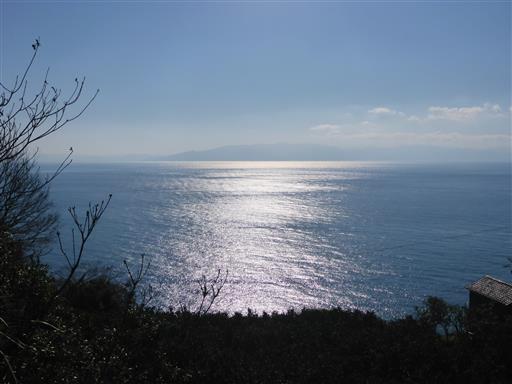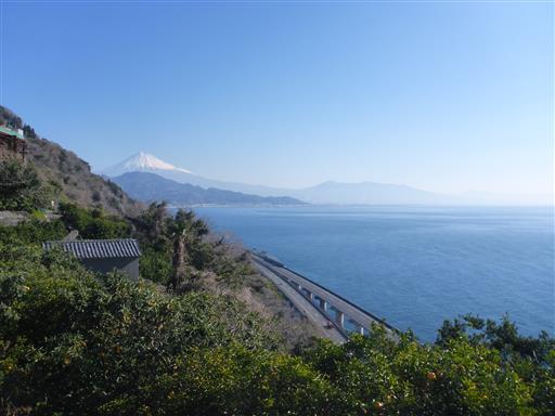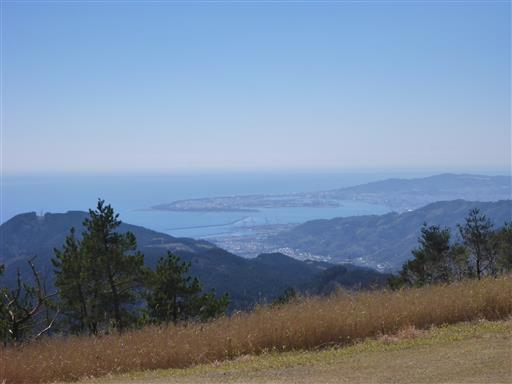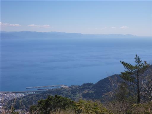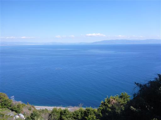 駿河湾の先に見えるのは伊豆半島、半島の先端に見えているのは波勝崎。