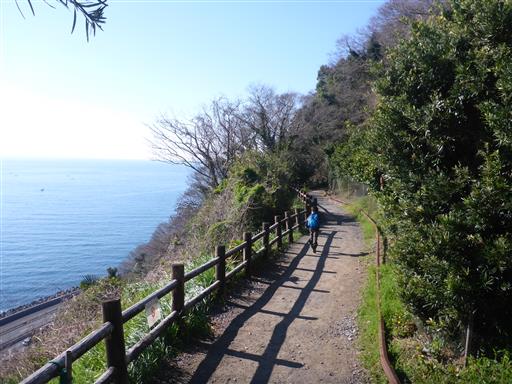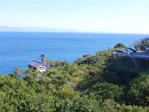 車道に到着。昼を過ぎても、まだまだ海は青い。