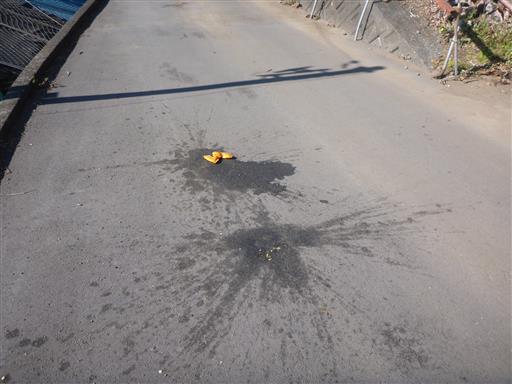 ミカンが落ちて破裂した跡。多くのミカンが落ちていたが収穫はされていないのだろうか?