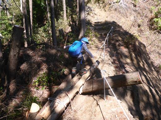 倒木。登山道の入口に倒木注意と書かれていたが、全く危険はない。
