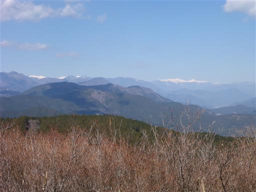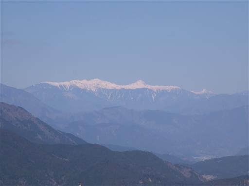 北側には南アルプスが見渡せる。白い山々は前衛の山に隠されてあまり見えないが、