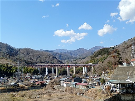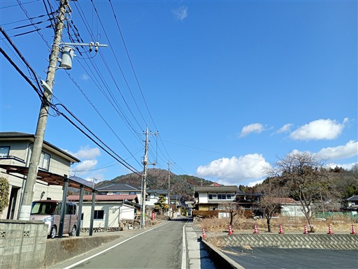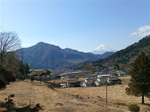 大月駅からほど近い場所だが、山に囲まれた美しい山村風景が広がる。