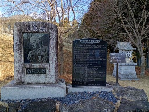 お伊勢山に到着。白簱史朗の碑がある。この辺りの出身だったようだ。