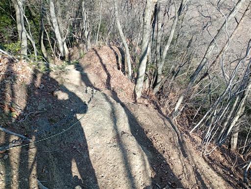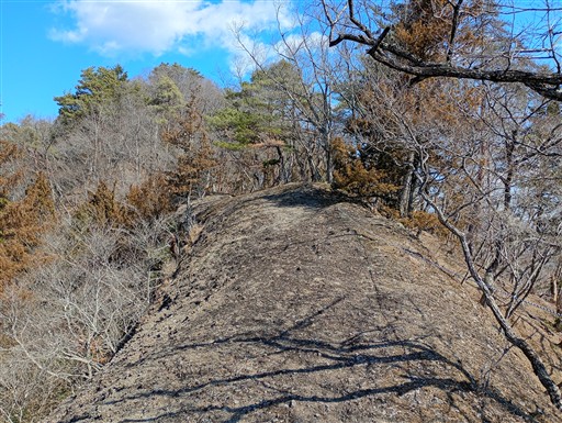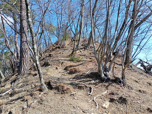 痩せ尾根。全体的に地形が急峻な山だ。