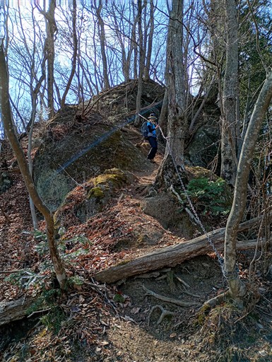 岩場の鎖。少し難しいポイントだ