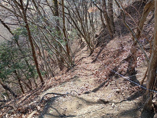 トラバース道。落葉が堆積した道は細く、斜面も急だ。