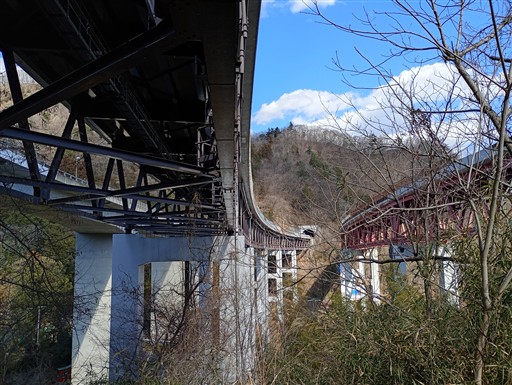 中央道の高架をくぐる。