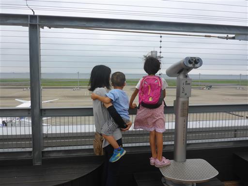 室外の展望デッキに出てみる。ここでは飛行機離陸時の大きな音が響き渡っている。