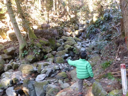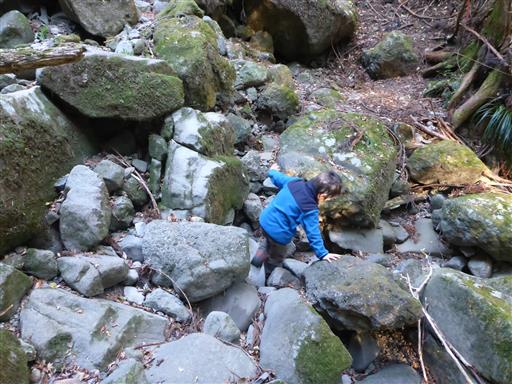 何度か巨岩が転がる沢を渡る。水はほとんど流れていない。