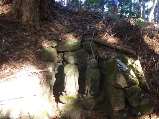 樽峠に到着すると、2体の地蔵が並んでいる。ここは古の峠道だ。