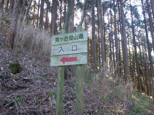 しばらく歩くと貫ヶ岳登山道入口の標識が現れる。