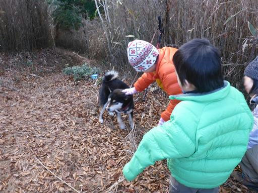 犬を連れて登ってきている人がいて、子供たちが遊んでいる。