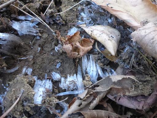 昼食をとったら下山開始。足元には小さな霜柱がある。