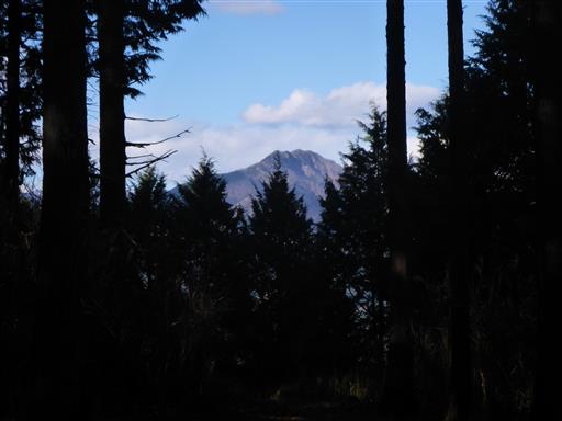樹林の間から格好良い山がチラリと見える。篠井山だろうか?