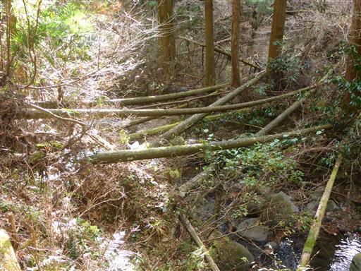 山奥だが明るく開けている。車道終点から細い道を辿って行く。