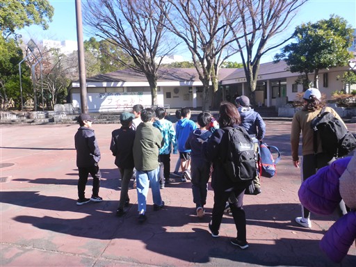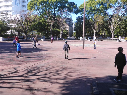 遅れてくるメンバーがいたので、前の広場でボール遊びをして待つ。