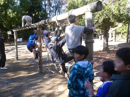 スポーツクラブのイベントで、チームメイトと平和の森公園アスレチックに行く。