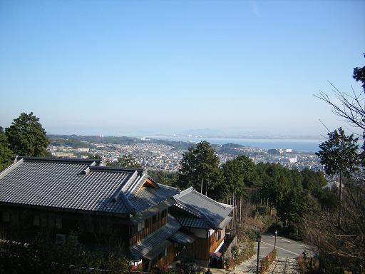 ケーブルカーの駅からの眺め。遠くに沖島が見える。
