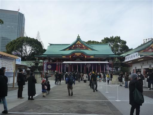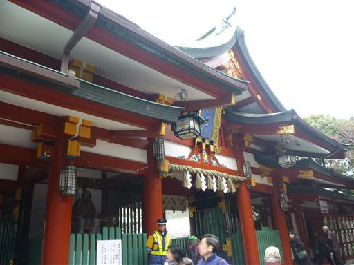 正面に見えるのが本殿。多くの参拝客を捌くために、この時期は鈴がたくさんつけられている。