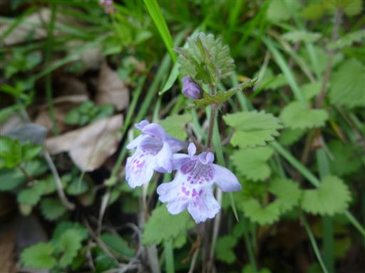 道端にはカキドオシの花が咲いている。