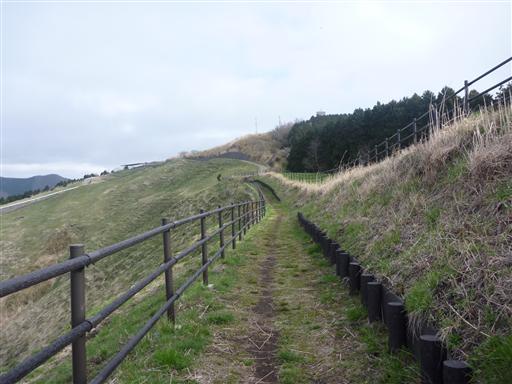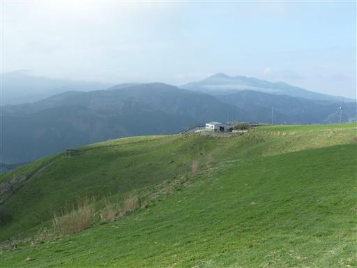 大野山の山頂部に広がる牧場に到着する。樹木がなくなり大きく展望が広がる。