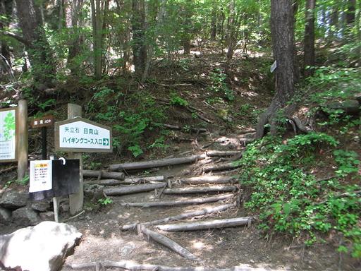 日向山への登山道へ入っていく。1時間半も林道を歩いてようやく登山道入口だ。