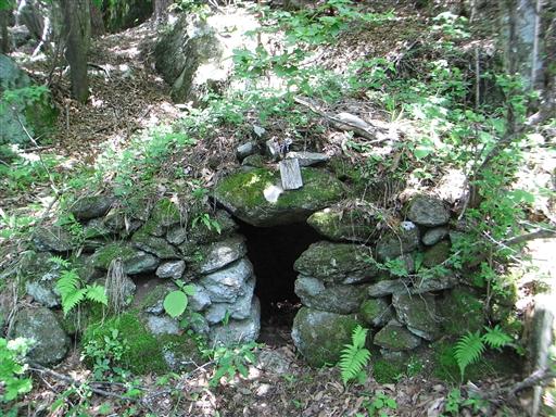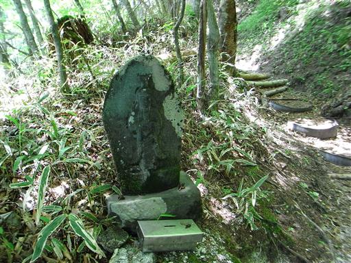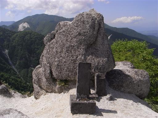 山頂部の一角には石碑があり、たくさんの賽銭が置かれている。