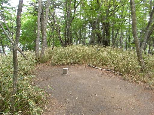 日向山の三角点に到着。登山道から少し外れたところにポツリと置かれている。
