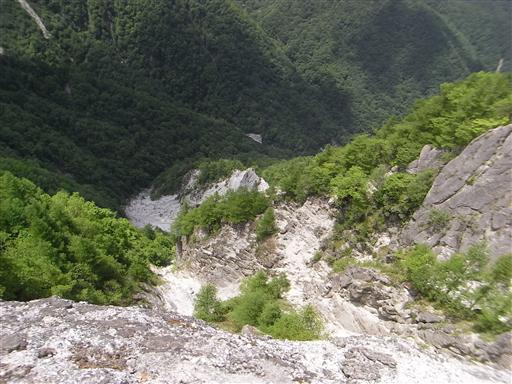 谷を覗くと急傾斜の白い斜面が谷底まで一直線に落ち込んでいる。