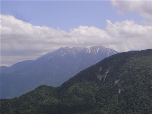 山頂でのんびり休憩していると、鳳凰三山にかかっていた雲が取れて姿を現す。