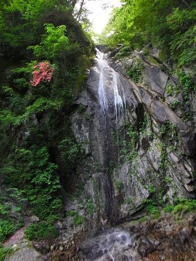 滝の横にあるヤマツツジが良いアクセントになっている。