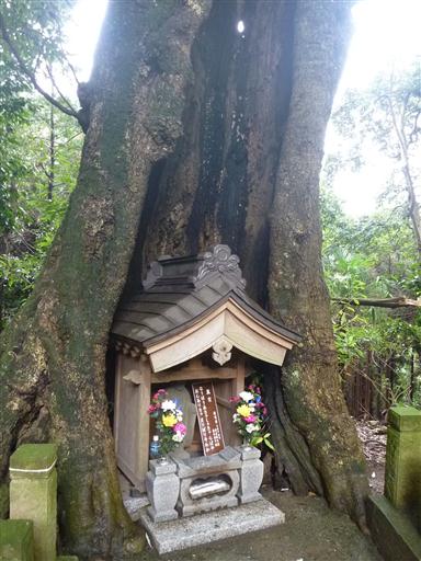 木の幹の穴の中に虚空蔵菩薩像が祀られている。
