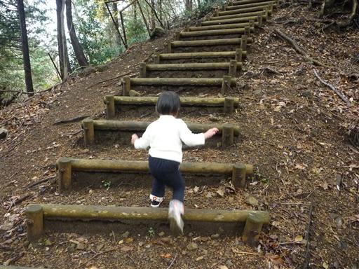階段も元気に登っていく。頑張ってはいたが、8割ほど進んだところで抱っこをせがまれる。