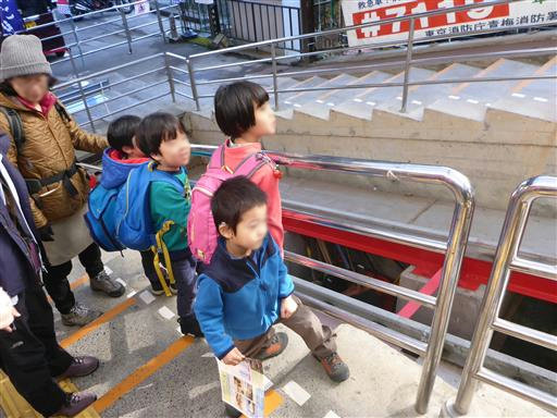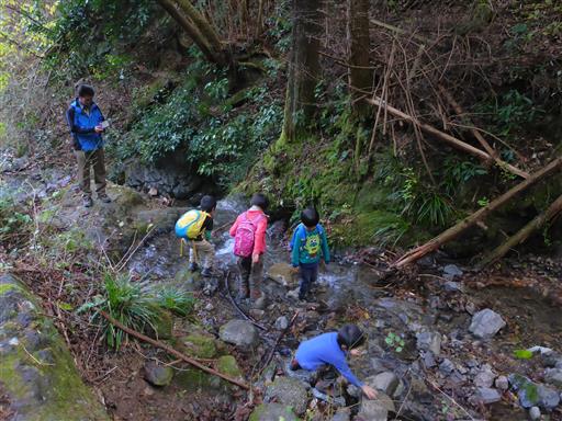 先行して歩く子供たち。小1・年長・年長・年中・年少の5人組だ。
