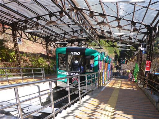混雑するケーブルカーに乗車し出発。眼下の紅葉がきれいだ。