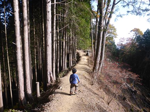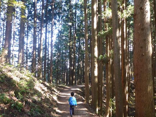 山道に入ると普段から山を歩いている3人が先行し、隊列が長く伸びる。